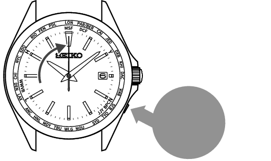 ボタンを3秒押し続けて秒針が0秒位置に移動したら離す