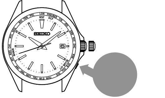 手表会切换到时区选择模式,而秒针会移动到当前设定的时区。如何选择时区(显示世界各地区的时间)