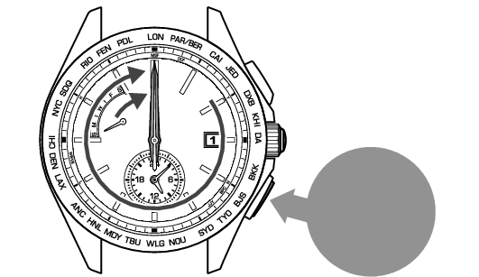 手表切换到日期的基准位置对准模式。
