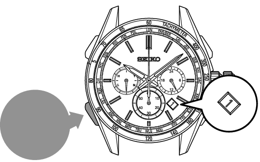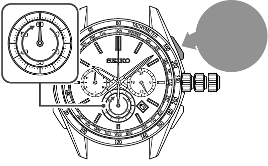ストップウオッチ分針が動いて、「ストップウオッチ分針」の基準位置合わせモードに入ります。