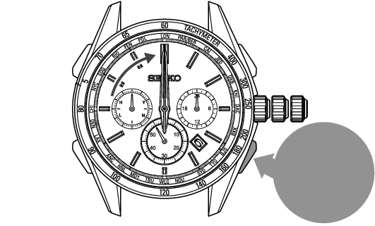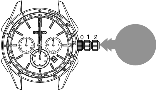 すべての針が「0秒」位置に停止したら、りゅうずを押し戻す