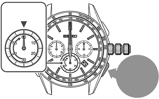 ボタン操作をしない状態が10秒以上続くとストップウオッチ秒針が自動的に0秒位置に戻ります。