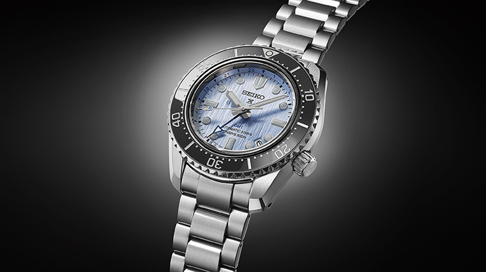 복잡한 질감의 아이스 블루 다이얼이 특징인 이 시계는 북극과 남극의 풍경과 바다 풍경을 형성하는 극지방 빙하의 질감을 담고 있습니다. 세이코의 신뢰할 수 있고 내구성 있는 시계에 대한 명성은 1960년대와 70년대에 모험가와 연구원들은 북극과 남극 탐험에 착용했습니다.