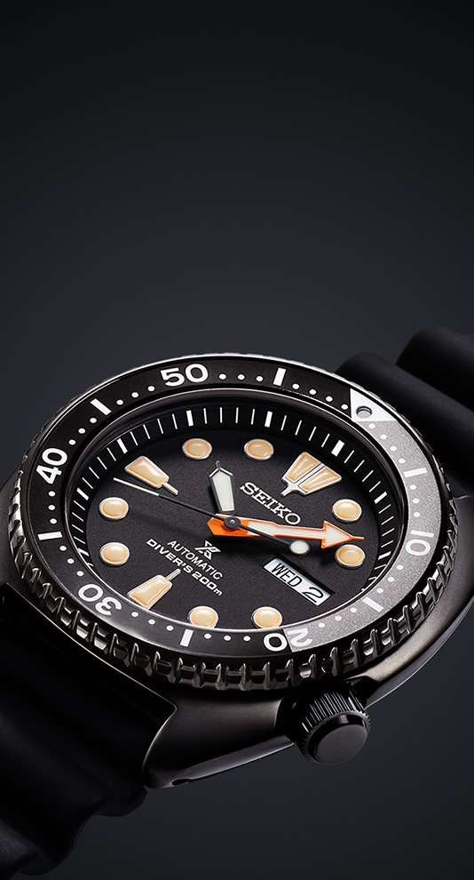 At night the marine world appears mysterious, which makes the experience of night diving alluring. Even if you have dived at a site before, you may discover a whole new world when you descend into the water at night.The Seiko Prospex new “Black Series” is inspired by the world of night diving, with functions which meet Seiko's stringent standards for diver's watches.