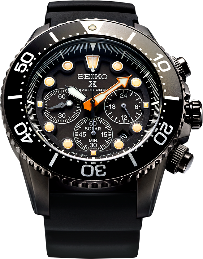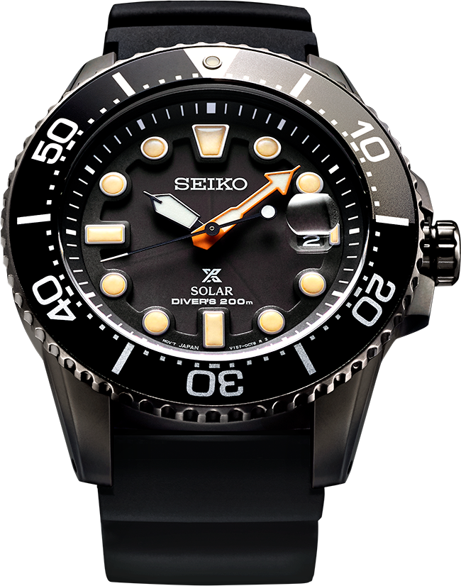 With a watch case fully protected by a hard black coating, this new design series reflects the darkness of the deep sea. Like the light used by a night diver, the bright orange minute hand accurately indicates the exact time. Even in the dark, Seiko’s unique LumiBrite ensures reliable visibility.