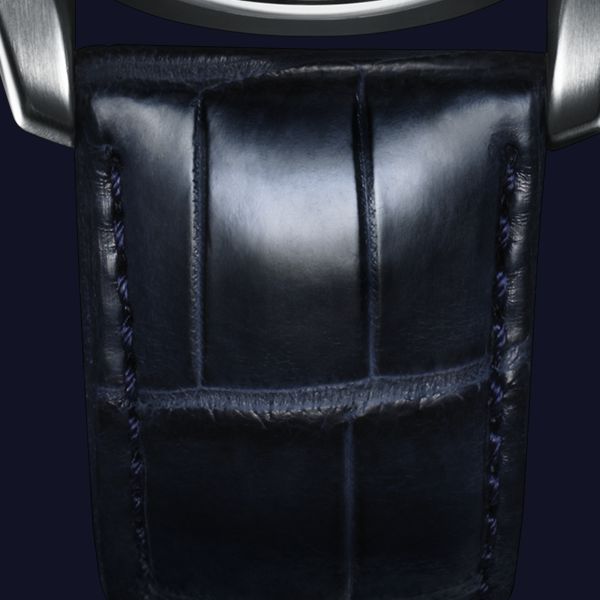 Dans un souci d'harmonie avec le cadran, son bracelet en crocodile est d’un bleu profond et son éclat délicat reflète de manière subtile la lumière.