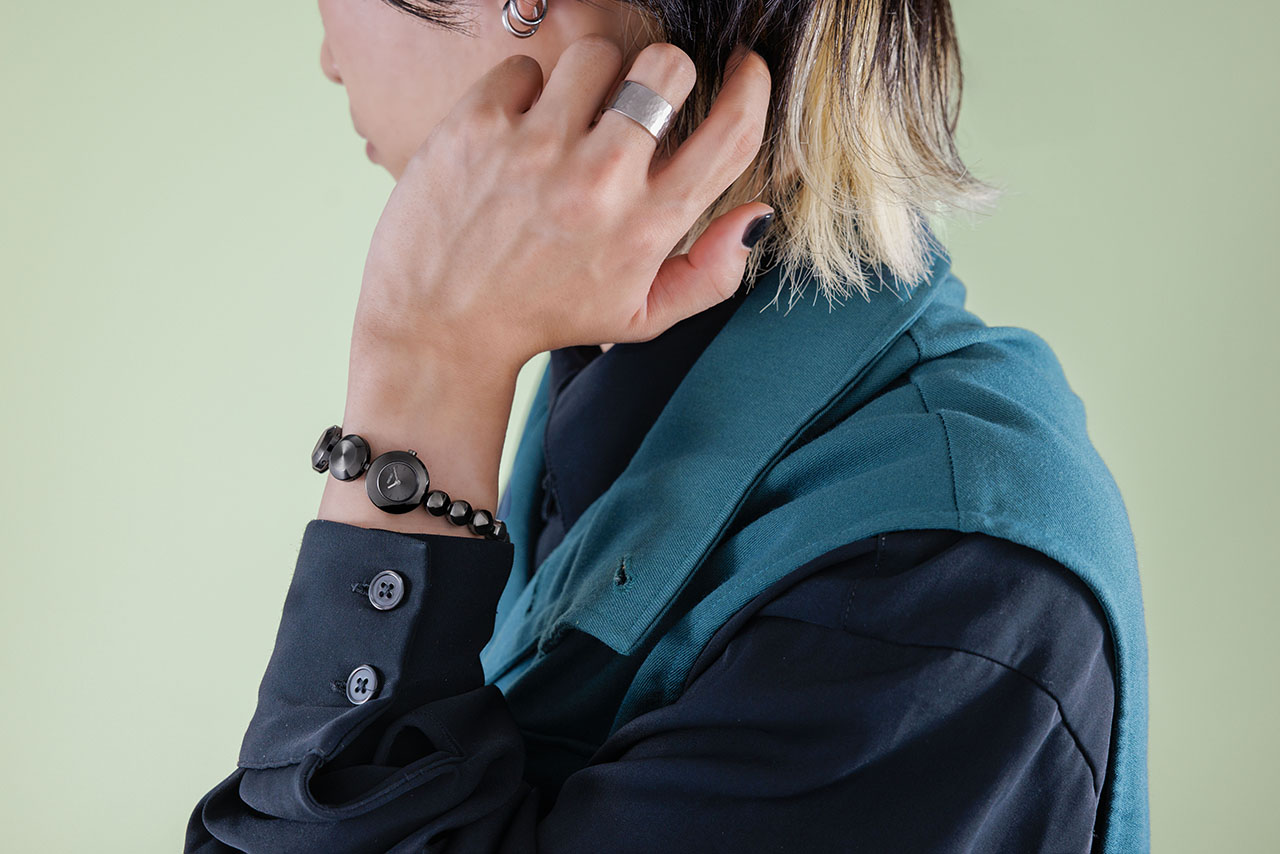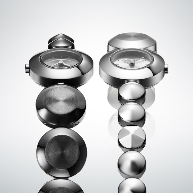 Dit model geeft een nieuwe invulling aan dat concept door de grootte en vorm van de schakels te veranderen en de kast naadloos in de band te integreren. Wat resulteert is een ontwerp dat ook puur als sieraad kan worden gedragen.