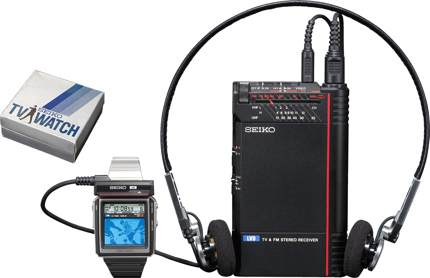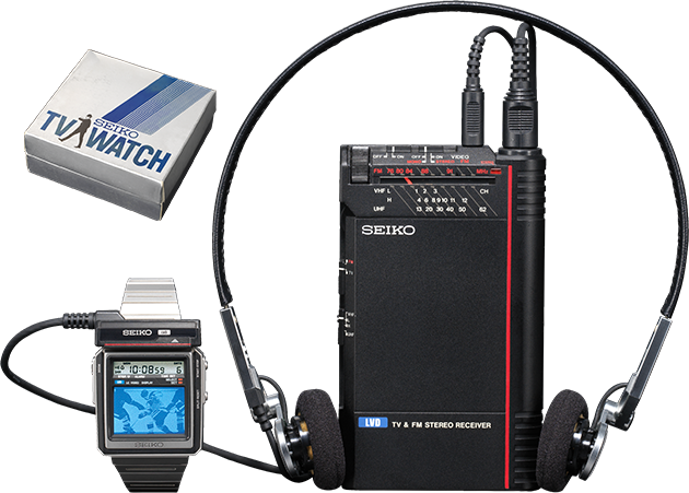 Dit hypermoderne horloge kon dankzij de bijbehorende tuner niet alleen tv-programma's weergeven op een 1,2 inch LCD-scherm, maar kon ook FM-radiosignalen ontvangen. De TV Watch werd in 1984 opgenomen in het Guinness Book of Records als de kleinste televisie ter wereld.