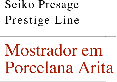 A tradição da porcelana Arita é valorizada na cor dos mostradores, branco com um traço de azul, que era a cor das primeiras porcelanas Arita. Os mostradores, feitos em Arita, têm a rica textura e profundidade que leva a assinatura de da porcelana de maior qualidade. A porcelana Arita foi, portanto, uma escolha natural para os mostradores de uma coleção Presage, mas a equipe Presage precisava estar 100% confiante quanto à sua durabilidade e resistência. Um novo tipo de porcelana Arita, criado há apenas três anos, ofereceu a solução. Este novo material de porcelana é quatro vezes mais rígido que o material habitual e tem a resistência e a flexibilidade necessárias para um mostrador de relógio Presage.
