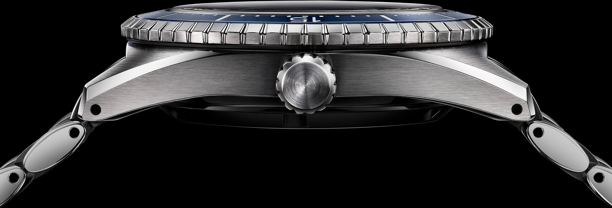 Die Gehäuseränder und die Lünette sind hochglanzpoliert, um ein Hängenbleiben und eine Beschädigung der von den Tauchern verwendeten Ausrüstung zu verhindern. Dies sorgt für ein glänzendes Aussehen und verbessert gleichzeitig die Funktionalität.