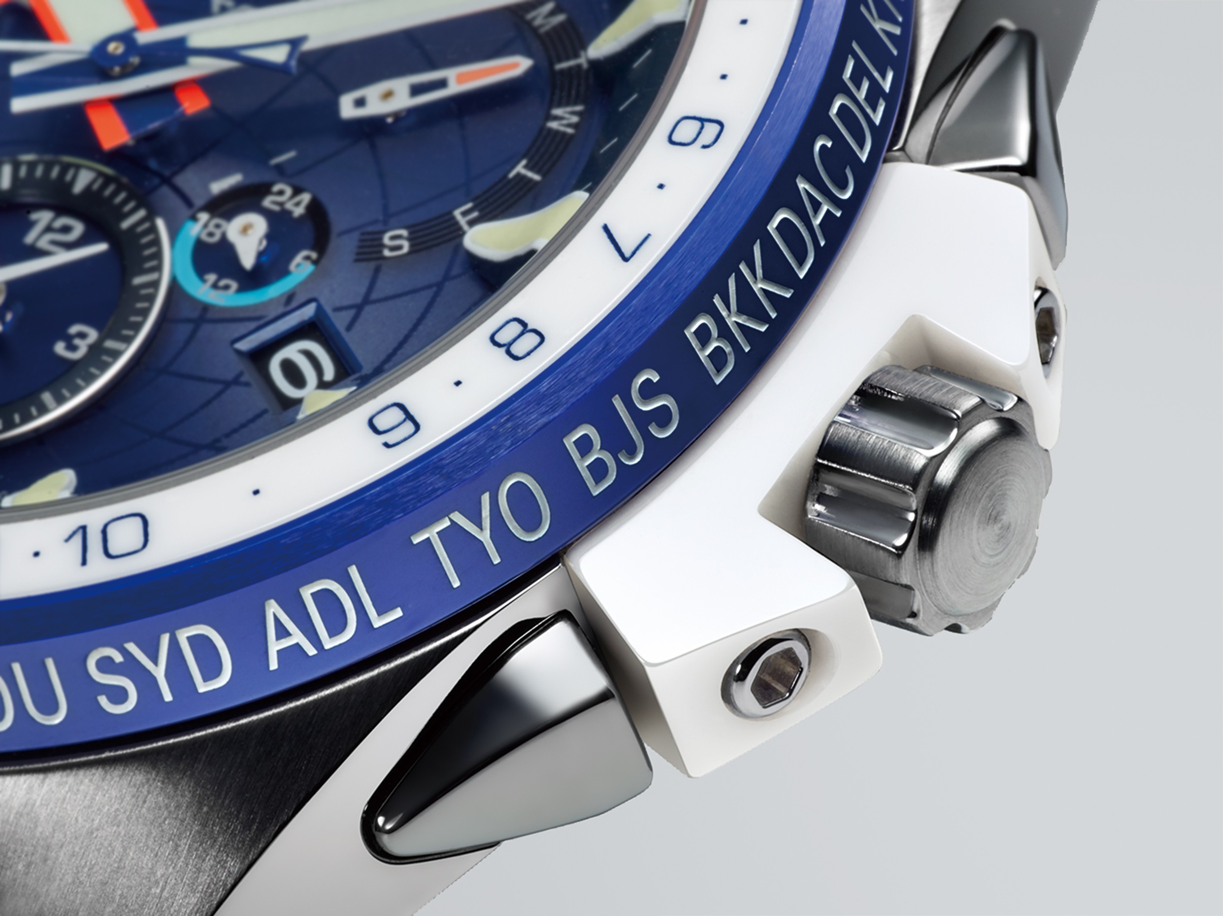 superharten Schutzschicht und einer weißen Keramiklünette. Die Uhr ist bis 20 bar wasserdicht und