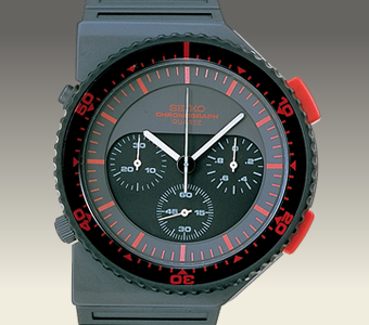 1983 designte Giugiaro Design mit dem Speedmaster Chronographen die weltweit erste analoge Quarzarmbanduhr mit Chronographenfunktion. Um das Design zu verwirklichen, entwickelten Seikos Ingenieure ein einzigartiges Knopfdrucksystem, das es Rennfahrern während der Fahrt erlaubte, die Drücker bequem zu bedienen. Die Uhr war sehr beliebt und ist heute noch ein begehrtes Sammlerobjekt.