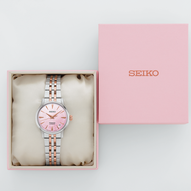 Wir präsentieren eine limited-edition Uhr, inspiriert von einem Kirschblüten-Cocktail im Frühling.