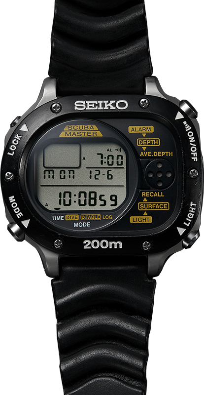 Die weltweit erste Armbanduhr, die mit einem Tauchcomputer ausgestattet war, der automatisch die Tauchzeit und -tiefe misst, anzeigt und aufzeichnet; sowie Informationen zur Gefahrenvermeidung liefert.