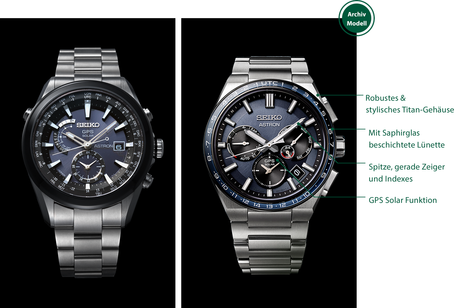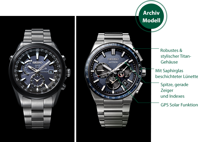 Zum 10-jährigen Jubiläum der GPS-Solaruhr brachte Seiko ein neu gestaltetes Modell mit einem Titangehäuse und einer mit Saphirglas beschichteten Lünette auf den Markt. Diese Uhr symbolisiert die Positionierung der Astron als ultimative Hightech-Uhr für eine neue Ära.