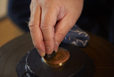 Nach der Beschichtung und dem Polieren ist das Zifferblatt bereit für den letzten Endbearbeitungsschritt. Bei diesem Arbeitsschritt überzieht Herr Tamura seinen Finger mit einem speziellen Pulver, um die Oberfläche des Urushi-Lack-Zifferblattes zu polieren. Herr Tamura verlässt sich hierbei auf seine filigranen Fertigkeiten und seine Intuition und arbeitet sorgfältig auf der Oberfläche des Zifferblattes, um die dem Urushi innewohnende Anziehungskraft hervorzubringen. Dieser letzte Schritt des Hochglanzpolierens ermöglicht ihm eine abschließende Kontrolle des Glanzes und der Dicke des Urushi, während er außerdem nach verbleibenden Kratzern oder Nadelstichen Ausschau hält. Dieser Schritt demonstriert die Fähigkeiten des wahren Meisters. Das fertiggestellte Urushi-Lack-Zifferblatt wird seine ausgeprägte Urushi-Farbe und seine handgefertigte Einzigartigkeit als Bestandteil der Uhr beisteuern.