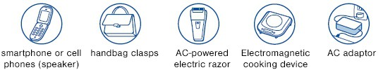 En particular, los teléfonos móviles, los televisores y los altavoces de PC, los collares magnéticos, los broches de imán de bolsos, los secadores de cabello, las maquinillas de afeitar eléctricas y las partes magnéticas de los refrigeradores son magnéticos.