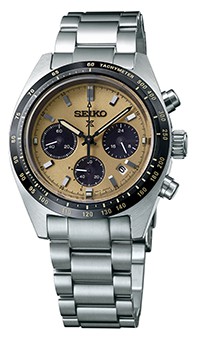 La nueva serie también incluye cuatro nuevos cronógrafos solares impulsados por Calibre V192. La forma de la caja es fiel a la original, pero su diámetro de 39 mm, la combinación del pulido de línea del cabello y el pulido suave en la pulsera y el cristal de zafiro curvado la actualizan. Estos nuevos cronógrafos solares se ofrecen en cuatro colores de esfera diferentes; blanco, azul marino, dorado y negro. Sus esferas tienen un acabado de arena que garantiza el alto nivel de legibilidad que es una característica central de cada reloj Prospex. Los cuatro relojes también se unirán a la colección principal de Prospex.