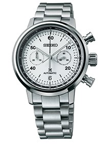 Además del reloj de edición limitada, una nueva creación con la misma caja y brazalete y también impulsada por el Calibre 8R64 se une a la colección principal de Prospex. El diseño de la esfera es un guiño sutil al primer reloj de pulsera cronógrafo de Seiko y Japón, el Crown Chronograph de 1964. Sus marcadores de hora biselados, agujas de horas y minutos nítidas con Lumibrite de color, sus pulsadores de cronógrafo y los marcadores en el anillo exterior de la esfera hacen eco del diseño de el original.