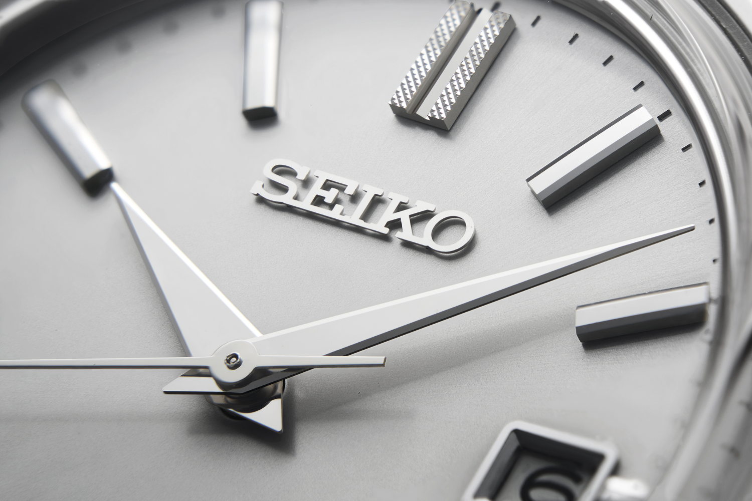 Las agujas anchas y largas son otro detalle tomado del KSK. La esfera plateada tiene un suave patrón radial, que fue desarrollado para el recién nacido King Seiko, una actualización destinada a conservar el matiz del original al tiempo que expresa un ambiente moderno.