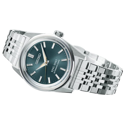 La serie «KSK», que existe desde la reaparición de la colección en 2022, está ahora disponible en un sencillo diseño de tres agujas con una caja de 36,1 mm, la más pequeña de los modelos King Seiko actuales. La caja cuenta con pulido espejo y acabado hairline para crear un diseño compacto pero afilado con crestas prominentes, una característica de la serie «KSK».