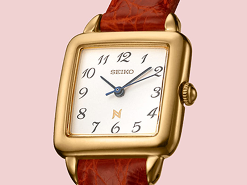 El elegante Noie tenía una caja cuadrada suavemente redondeada. Este reloj ganó popularidad debido a la atención al detalle en su diseño, incluyendo el uso de números arábigos clásicos originales y una correa de cuero de colores brillantes.