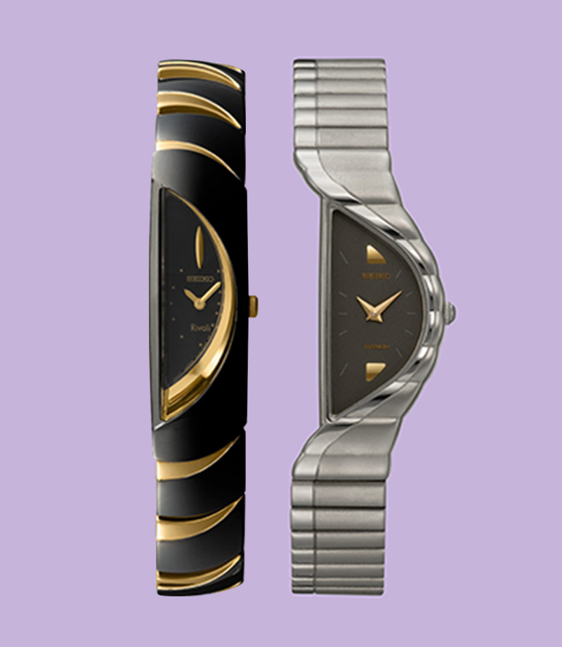 En la década de 1980, Seiko pudo lanzar muchos más relojes delgados, decorativos y accesorios gracias al desarrollo de movimientos de cuarzo extremadamente pequeños. Dos buenos ejemplos son el Lassale, con su característico brazalete de cristal de colores, y el Tisse, que puso de relieve un nuevo estilo de relojes holgados. Era una época en la que la moda mode estaba en alza. En un momento en que los consumidores buscaban diseños más atrevidos y únicos, Seiko lanzó el Rivoli asimétrico, que fue especialmente popular en Europa.
