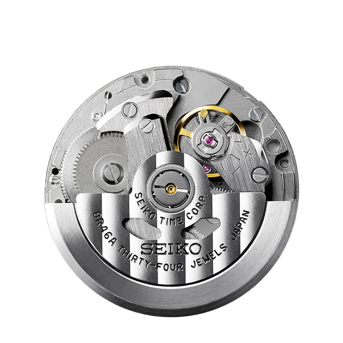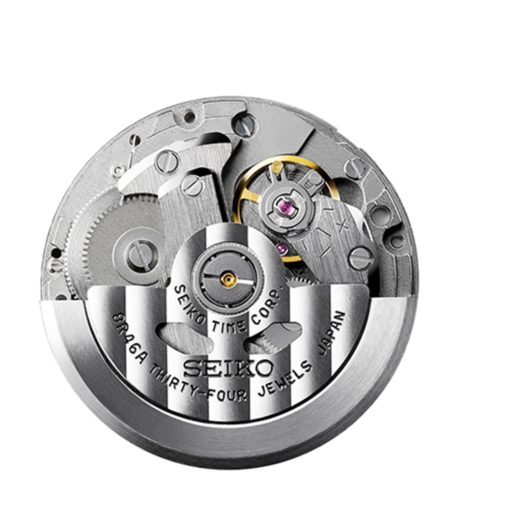 para personas activas.El calibre 7C46 es una versión evolucionada del calibre 7549 que se utilizó para el Quartz Diver's de 1978. Además de la resistencia a los golpes, este calibre tiene una mayor duración de la pila y utiliza plástico de ingeniería para lograr su peso ligero.