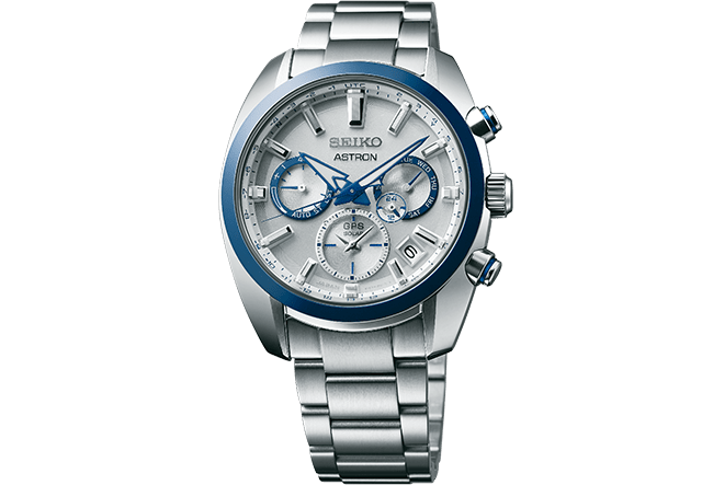 La caja de esta creación del Astron GPS Solar tiene la misma silueta curva y las mismas asas anchas que el reloj Quartz Astron de 1969, que sigue siendo uno de los logros tecnológicos más famosos de Seiko. El diseño se actualiza con el Calibre 5X53 GPS Solar Dual-Time que se ajusta a la hora exacta en cualquier lugar* del mundo, usando solo la energía de la luz y ofrece varias características avanzadas, incluyendo el ajuste de la zona horaria a alta velocidad y una función de «Transferencia de hora». La esfera es de un color límpido plateado claro con detalles en azul, y el bisel es de cerámica azul.