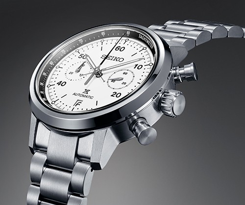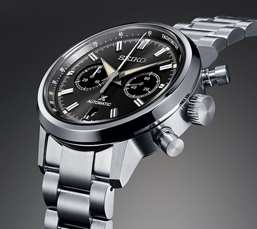 En plus de la montre en édition limitée, une nouvelle création, également animée par le calibre 8R46 et adoptant les mêmes boîtier et bracelet, rejoint la collection Prospex. Le design du cadran est un clin d'œil subtil à la première montre-bracelet chronographe de Seiko et du Japon, la Crown