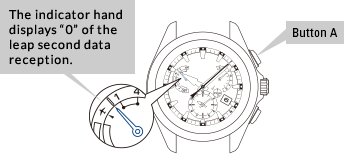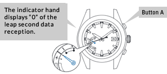 La montre va automatiquement et de manière répétée se mettre en mode de réception de la donnée de seconde intercalaire, jusqu’à ce que le processus réussisse. Pendant ce temps, la mise à l’heure ne se fera pas. Dans l’éventualité où la tentative de réception de la donnée de seconde intercalaire
