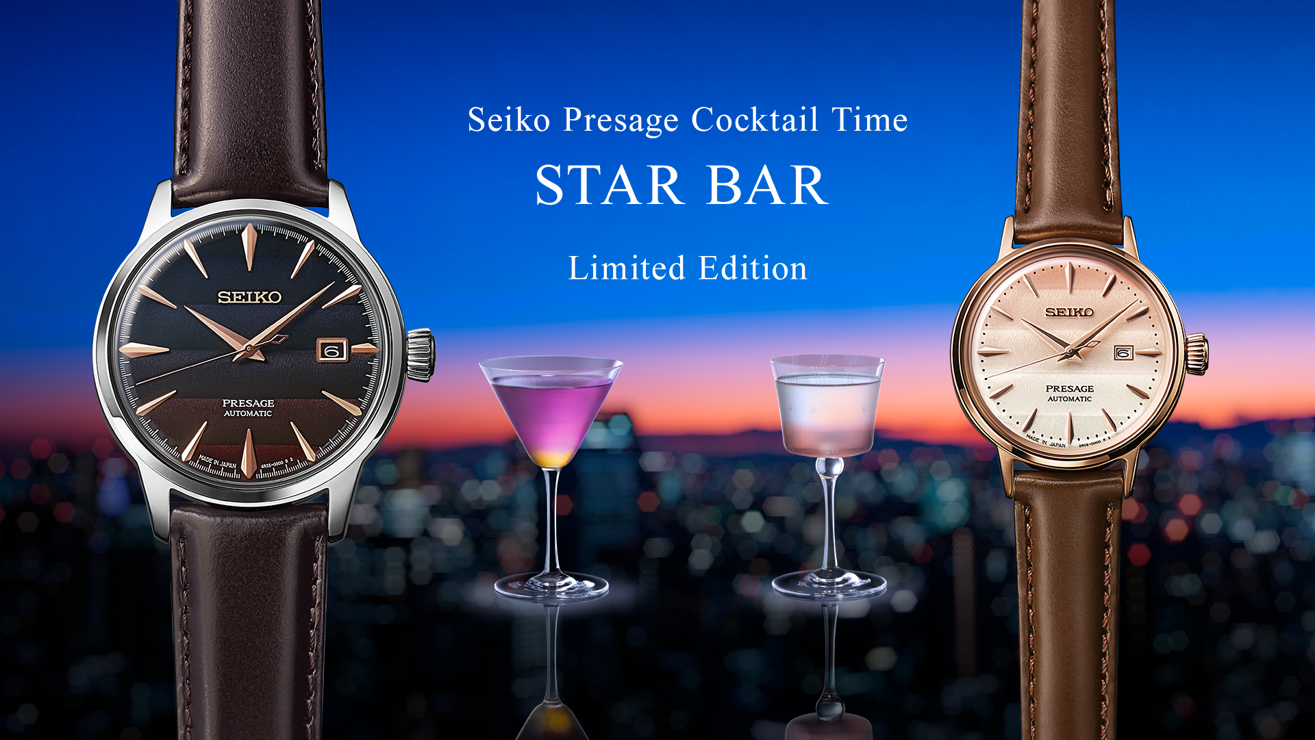 Premier barman à recevoir le prix "Contemporary Master Craftsman", Hisashi Kishi, propriétaire du STAR BAR, a créé les cocktails originaux qui ont inspiré chaque montre. Les cocktails eux-mêmes ont été inspirés par les magnifiques couchers de soleil de Tokyo, au Japon.