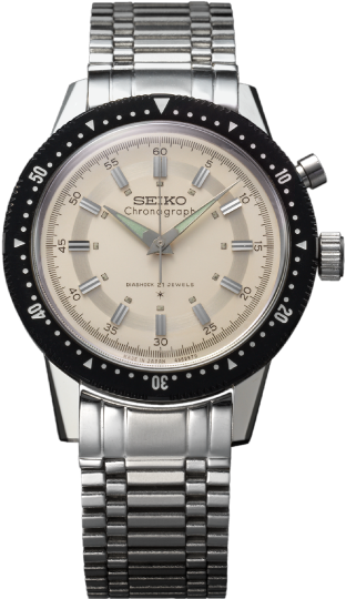 1964 fut pour Seiko et le Japon l’année de la première montre bracelet chronographe : la Crown Chronograph. Conçue de manière totalement innovante en tout point, cette montre marque le début de la fabrication de chronographes de poignet Seiko. Doté d’un simple mécanisme à poussoir, et d’une roue à colonnes pour contrôler les fonctions de démarrage, d’arrêt et de remise à zéro, ce chronographe, ainsi que tous les modèles qui suivront, démontrait amplement le même engagement à la précision que le calibre 6139.