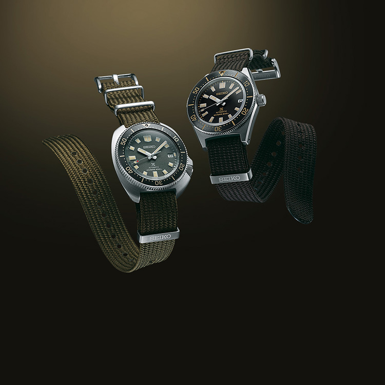 Ever since Seiko’s first diver’s watch was introduced in 1965, the company has continuously pushed back the boundaries of what diver’s watches can offer. Today, Seiko introduces in the Prospex collection two modern re-interpretations of landmark timepieces from 1965 and 1970 that are presented on special fabric straps designed and manufactured expressly for diver’s use. The two watches strike the perfect balance of design and function and embody the innovative spirit for which Seiko’s diver’s watchmaking is renowned.