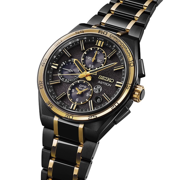 GPS Solar Dual-Time Chronograph baru ini merayakan semangat inovasi Astron. Melambangkan kesuksesan dan kemakmuran, aksen berwarna emas menghiasi setiap bagian jam tangan, mulai dari dial dan gelang hingga casing.
