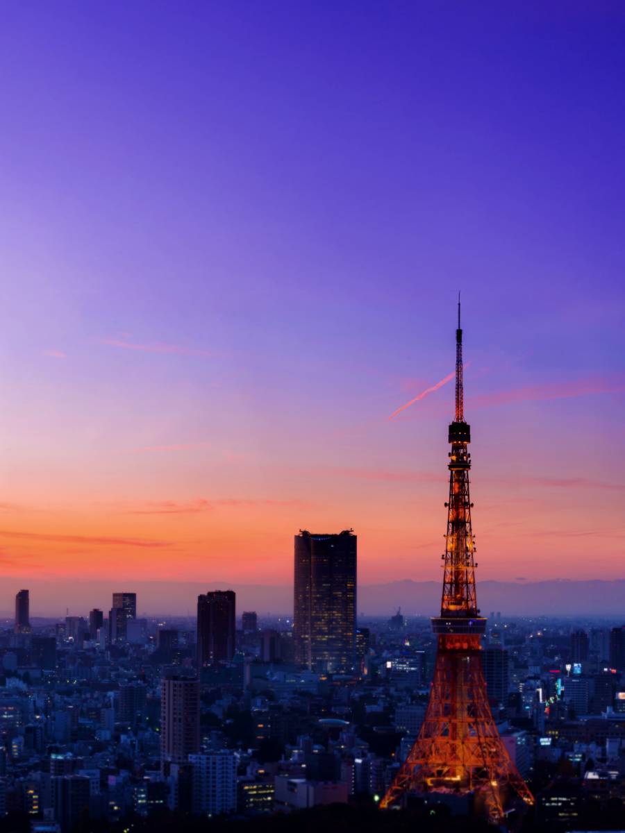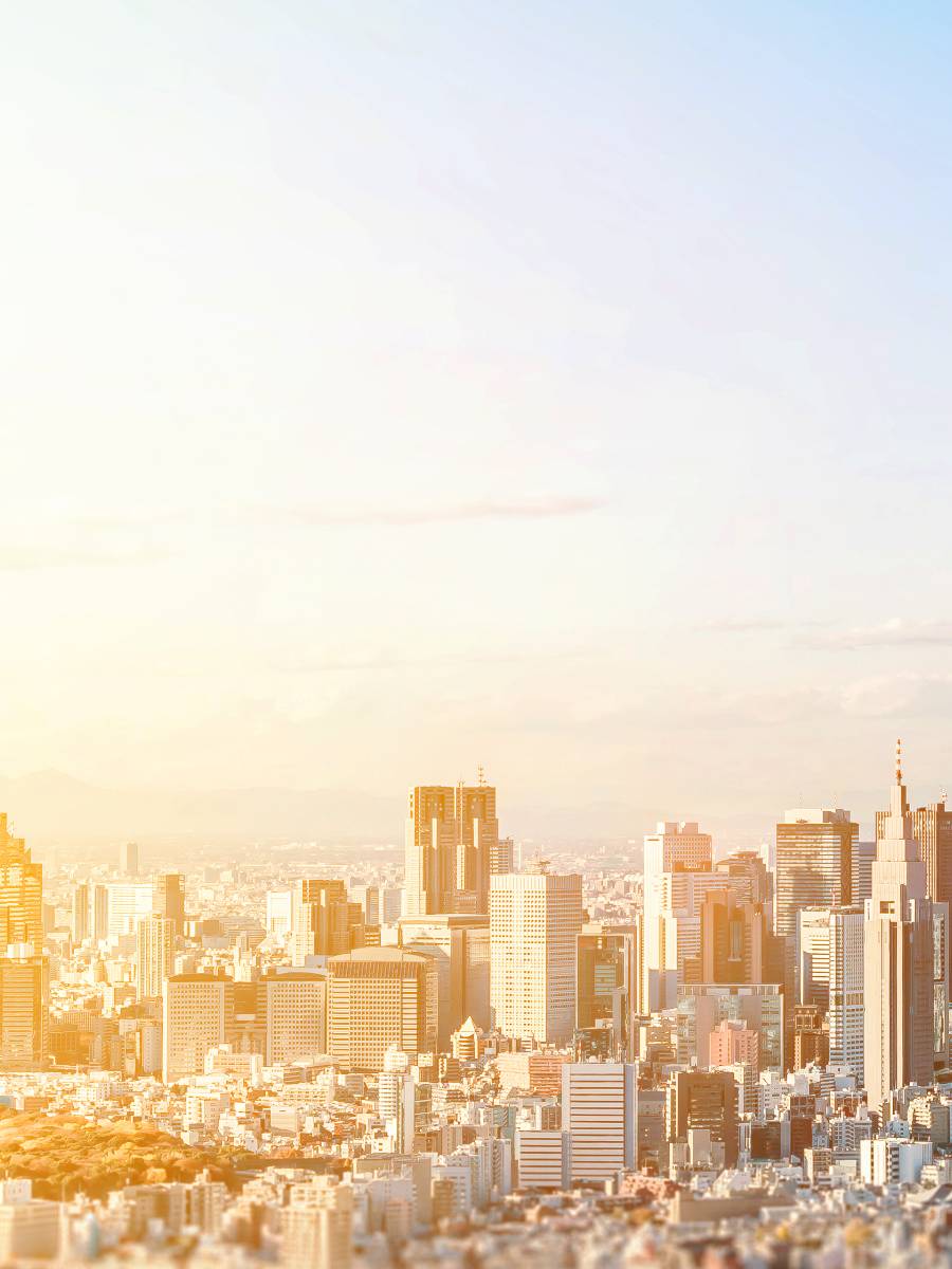 expressing the Tokyo scenery reflecting a clear blue sky on a