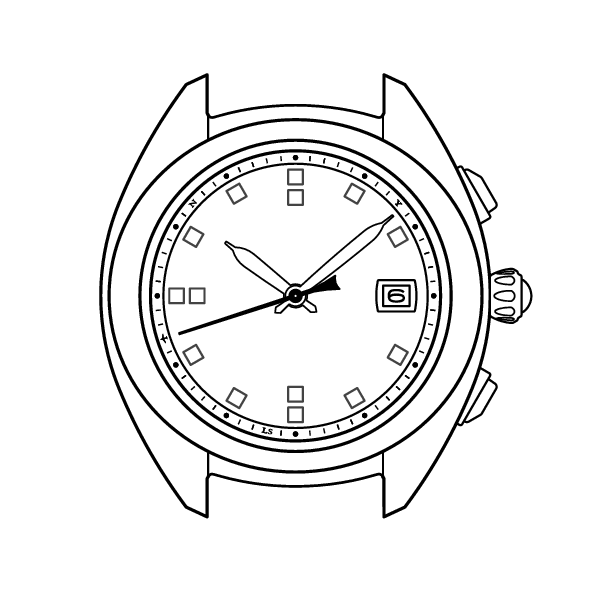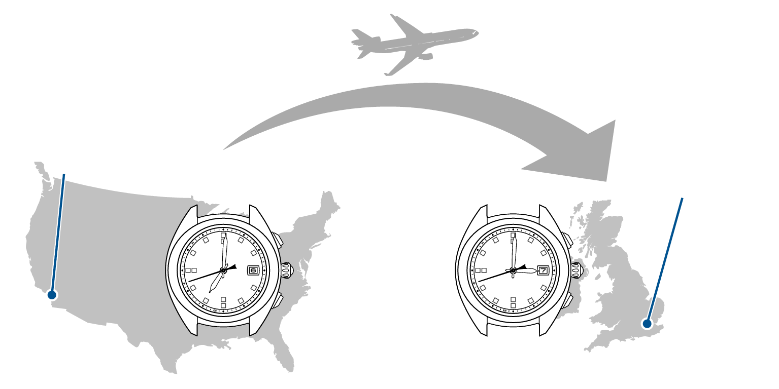 「強制時刻修正」の操作をすることで設定されている時差の正確な時刻を表示します。