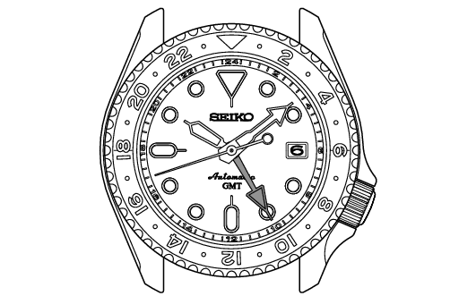 Ao utilizar o ponteiro para visualizar um segundo fuso horário (indicando a hora de duas regiões diferentes), puxe a coroa até à segunda posição (2 cliques), rode a coroa para avançar o ponteiro e assegure-se de que AM/PM está corretamente definido quando a data muda.
