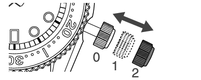 Tirez la couronne au second clic lorsque l’aiguille des secondes pointe vers la position 12 heures ; l’aiguille des secondes s’arrête.