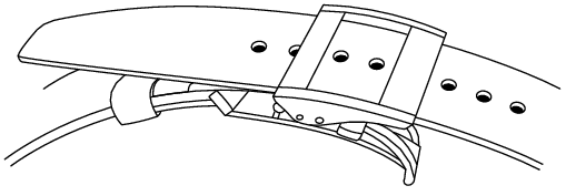 將錶帶的尖端放入可移動圈和固定圈,然後按下鐵扣架以扣緊錶帶扣。