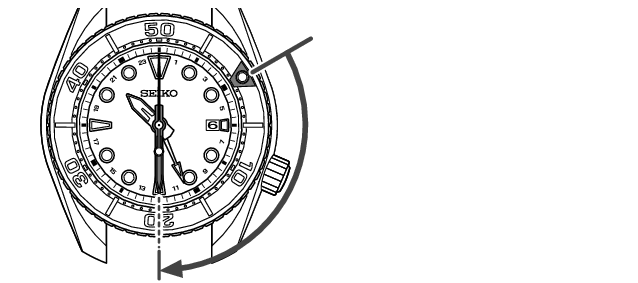 1. Ved starten af begivenheden, hvor du vil måle den forløbne tid (for eksempel når du begynder at dykke), skal du dreje drejekransen på en sådan måde, at Bezel-1 mærket på drejekransen flugter med minutviseren.