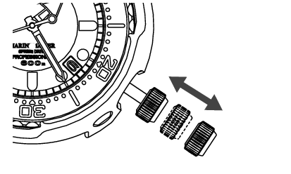 不要让表冠长时间地(即,不要达到 30 分钟或更长时间)处于第2格位置(表冠处于这个位置时,秒钟将停止走动)。如果表冠处于第2格位置(因而表针也停止走动)的时间超过 30 分钟,请先将表冠推回到其初始位置,并让秒针走动 30 秒钟或更长时间后,再重新执行时间设置操作。