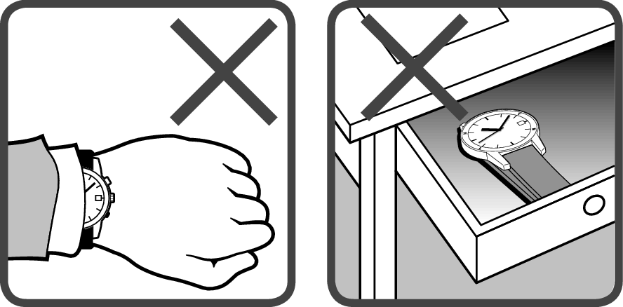 استخدام الساعة أو تخزينها في أوضاع لا يمكن فيها تعرض الساعة للضوء لفترة طويلة.