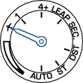 يشير عقرب المؤشر إلى ضبط DST (التوقيت الصيفي).
