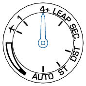 The indicator hand points to “1” or “4+” which shows “time adjustment” or “time zone adjustment.”