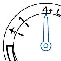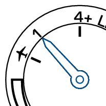 L’aiguille indicatrice pointe vers le « 1 » ou « 4+ », qui correspondent respectivement au réglage de l’heure et à celui du fuseau horaire.