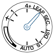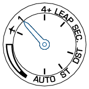 La lancetta indicatrice punta a “4+” a seguito della regolazione del fuso orario.