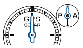 Décalage de l’aiguille des petites secondes indiquant le “résultat de la réception” et le “nombre de satellites dont les signaux sont reçus”.