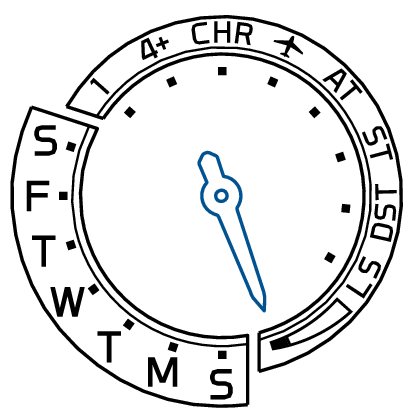 Caricare l’orologio finché la lancetta indicatrice multifunzione torna alla visualizzazione del giorno della settimana affinché l’orologio sia in grado di ricevere i segnali GPS. Quando la lancetta torna alla visualizzazione del giorno della settimana, il livello di carica sarà “medio” o “pieno”. |