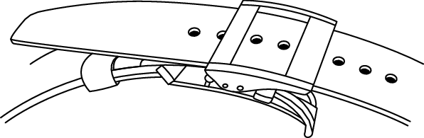 5. Estrarre il perno da uno dei fori di regolazione del cinturino. Far scorrere il cinturino per regolarne la lunghezza e cercare un foro adeguato. Inserire il perno nel foro.